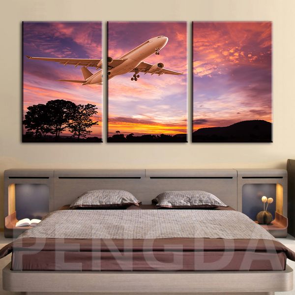 2019 Printed Pictures Home Wall Artwork Modular Poster Sunset View Aircraft Painting On Modern Style Canvas Living Room Decor Framed From Copy02