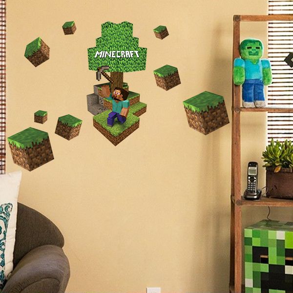 Cartoon Minecraft Wall Stickers For Kids Rooms Children 3d