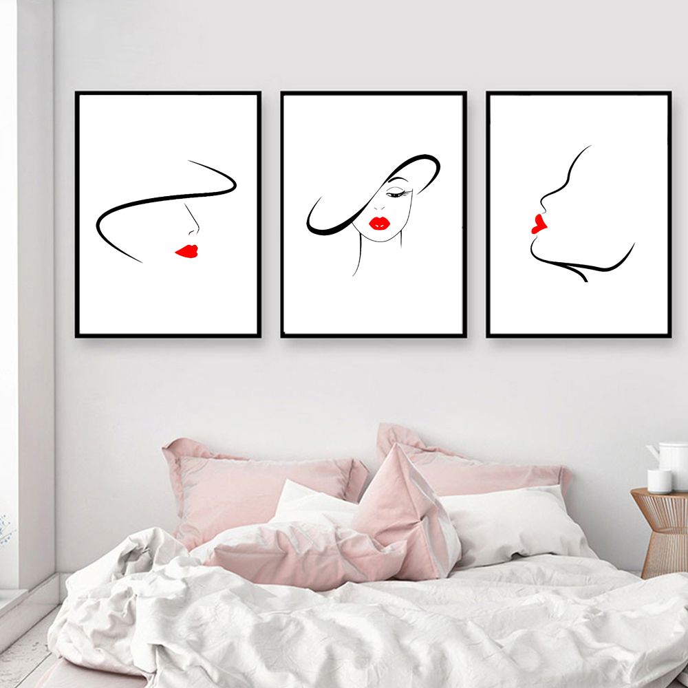 2019 Large Abstract Canvas Wall Art Black White Red Line Drawing Painting Nordic Minimalist Wall Picture For Girls Bedroom From World View 13 62